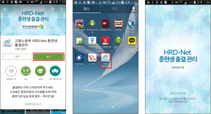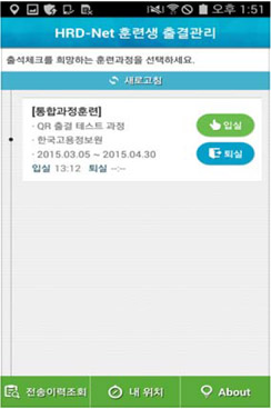 ¡Û Ãâ°á°ü¸® ¾Û(app) ½ÇÇà ÈÄ HRD-Net ȸ¿ø¾ÆÀ̵ð¿Í ºñ¹Ð¹øÈ£¸¦ ÀÔ·ÂÇÑ ÈÄ È®ÀÎ ¹öưÀ» Ŭ¸¯ÇÕ´Ï´Ù.