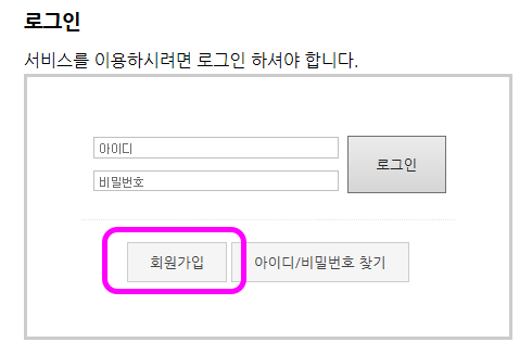 | 1. ȸ¿ø°¡ÀÔ ¹öưŬ¸¯ ¸ÕÀú ¿ìÃø À̹ÌÁö ó·³ ȸ¿ø°¡ÀÔ ¹öưÀ» Ŭ¸¯ÇÏ¿© ȸ¿ø°¡ÀÔ ÆäÀÌÁö·Î À̵¿ÇÕ´Ï´Ù. |