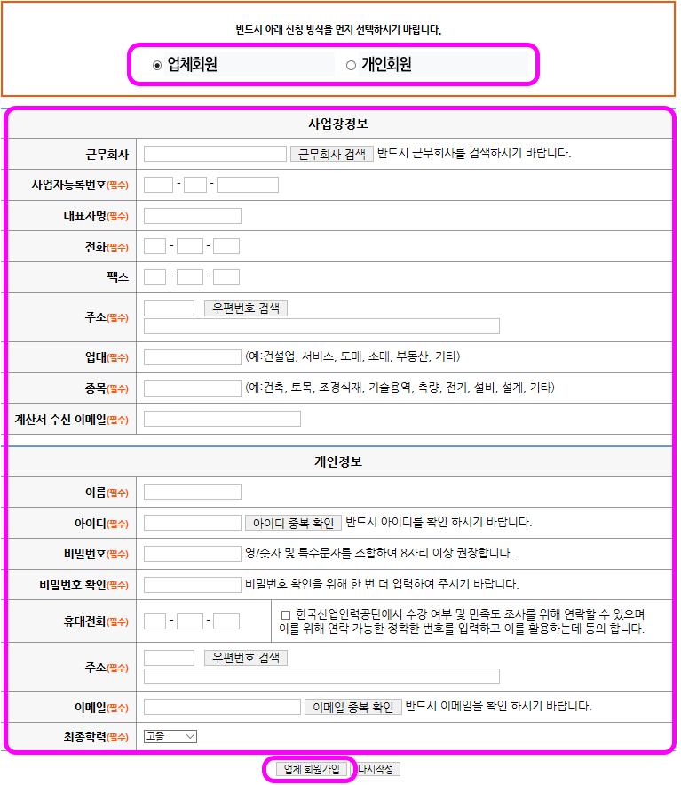 ¿ì¼± °¡ÀÔÇÏ·Á´Â ¹æ½ÄÀÌ ¾÷üȸ¿øÀÎÁö °³ÀÎȸ¿øÀÎÁö¸¦ ¼±ÅÃÇÏ¿© ¾ç½ÄÀ» ÀÛ¼ºÇÕ´Ï´Ù.
