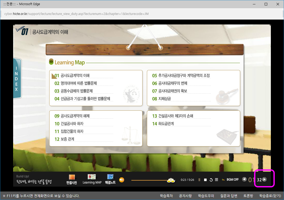 º»ÀÎ ÀÎÁõÀÌ Á¤»óÀûÀ¸·Î ¿Ï·áµÇ¸é ¿ìÃø À̹ÌÁöó·³ ±³À°À» ½Ç½ÃÇÒ ¼ö ÀÖ½À´Ï´Ù. ´Ü, ÀÌ¹Ì ÁøÇàÇÑ ÆäÀÌÁöÀÇ °æ¿ì ÀÌÀü ¶Ç´Â ´ÙÀ½¹öưÀ» Ŭ¸¯À¸·Î ÆäÀÌÁö¸¦ ºü¸£°Ô ³Ñ±â½Ç ¼ö ÀÖ½À´Ï´Ù.(´Ù½Ãº¸±â ±â´É) 2. ¸¸¾à ÁøÇà Áß°£¿¡ ÆäÀÌÁö¸¦ ´ÝÀ» °æ¿ì Àç ½ÃÀ۽à Á¾·áÇÑ ÆäÀÌÁöºÎÅÍ ´Ù½Ã ½ÃÀÛ °¡´ÉÇÕ´Ï´Ù. |